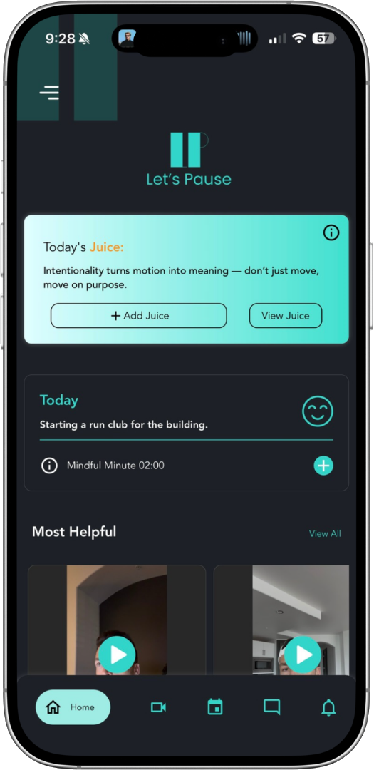 Every day Let’s Pause delivers Today’s Juice — a short word of influence to start your day with intention. Users can respond with a video, photo, or comment, visible in the Juice feed or the broader community. Inspire or be inspired.