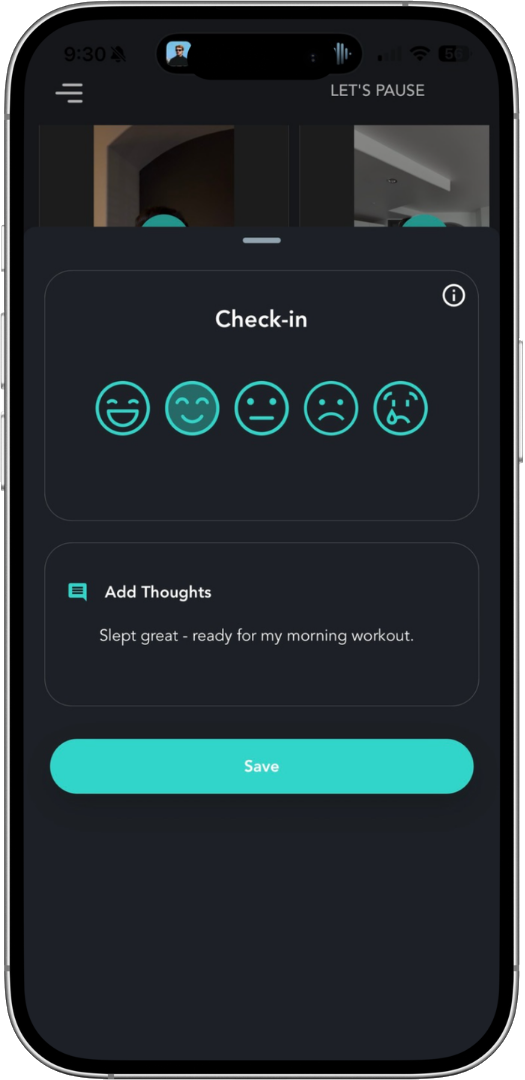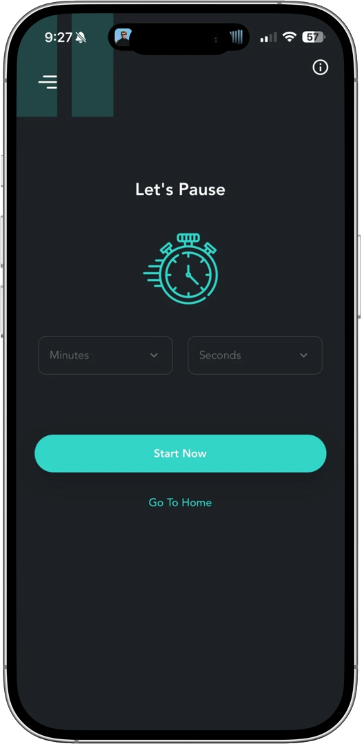 Set a timer from one to thirty minutes and intentionally pause. Just one minute a day has been shown to reduce stress and anxiety, improve focus, and promote emotional well-being. After your first pause of the day, add a written thought or voice note. Everything is saved to your calendar — a record of when you paused and what you took away.