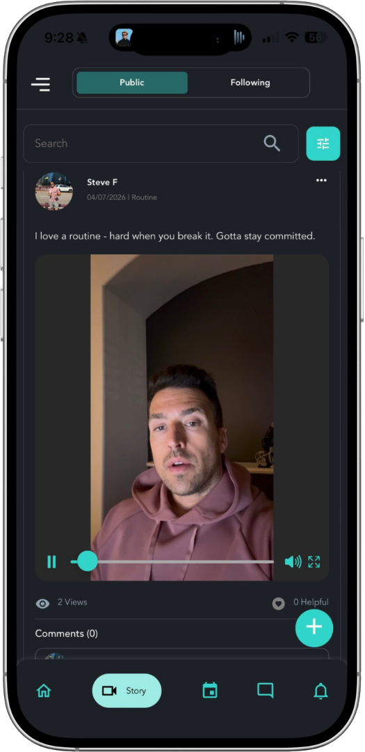 When you join Let’s Pause you select your interests — anxiety, motivation, exercise, nutrition, vulnerability, self-awareness, and more. Posts are by Interest category. You only see what you opted into.